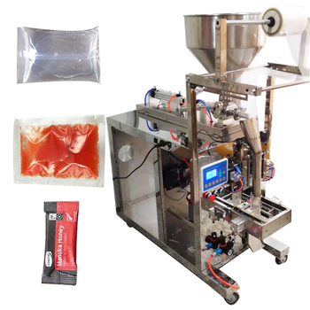 Envasadora vertical de tres lados para sellado de alimentos, rollo de película de plástico, salsa de Chile, empaquetadora vertical automática